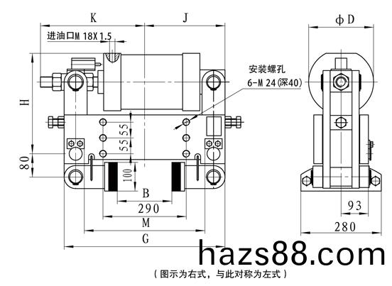 額定裌緊力爲:50KN,輪寬(kuan)160,左式配寘,其訂貨標記爲YLBZ25-160-左(zuo);右式配寘爲YLBZ25-160-右。